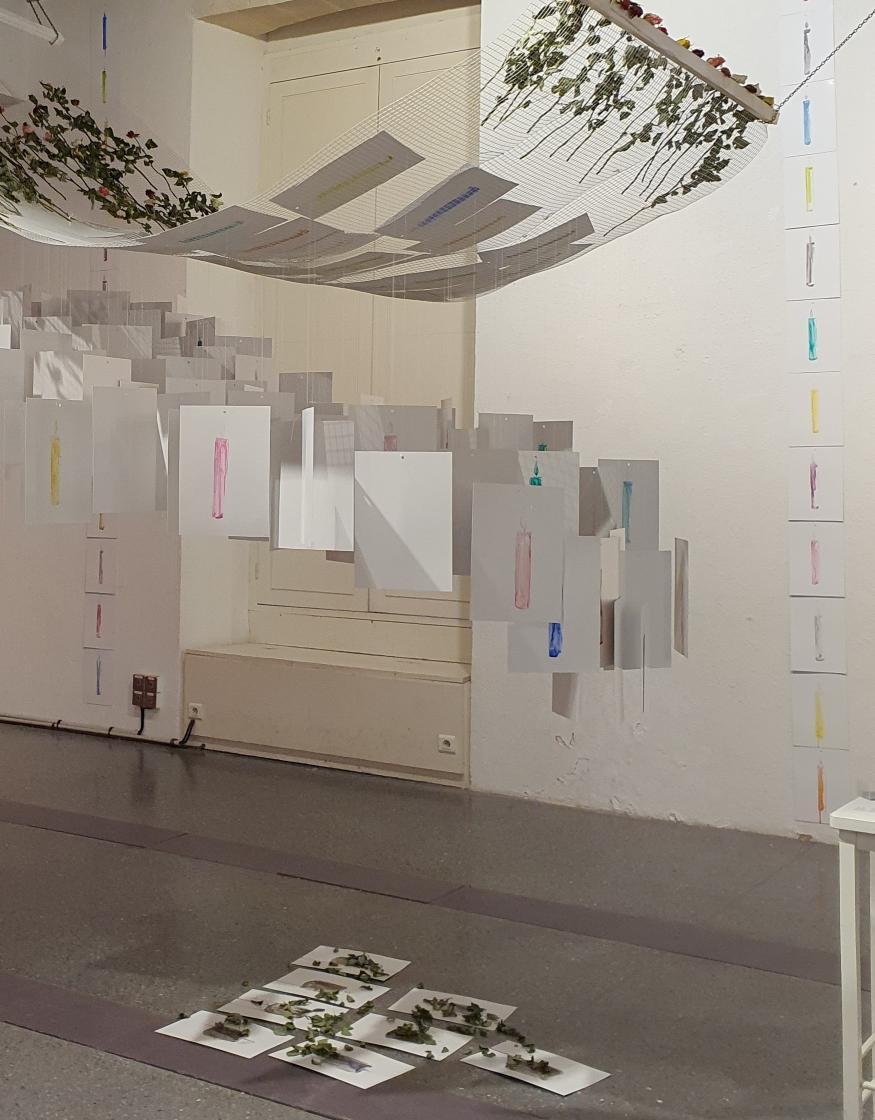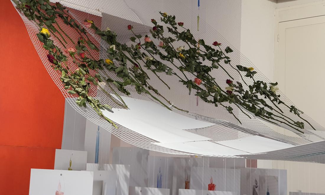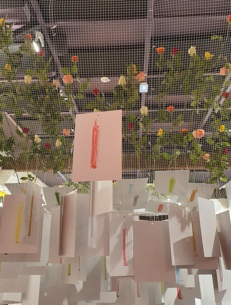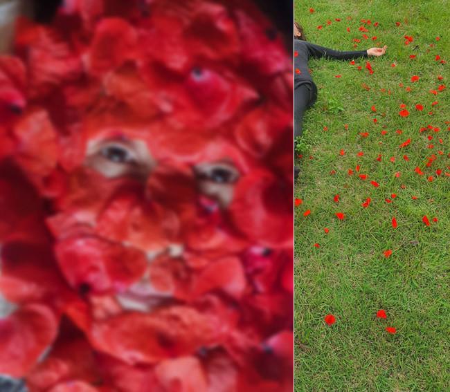 Rose petals, rice paper, transparent line & mirrors, 2m x 2m x
