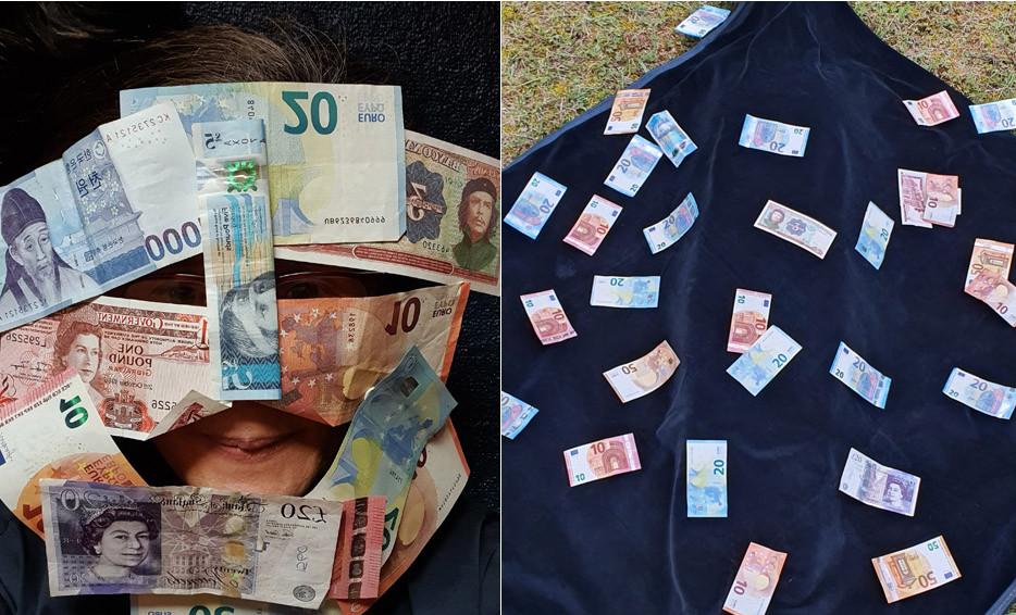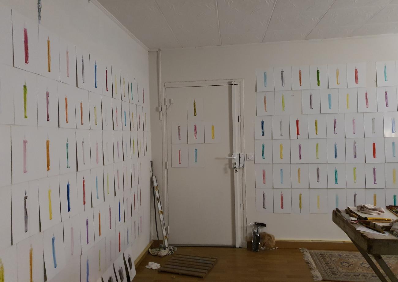 painting, glass tray, mirror, transparent line & ash. 2m x 2m x